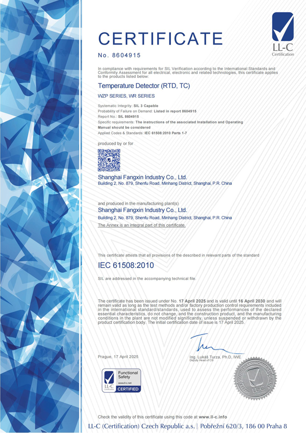 級精度產(chǎn)品制造計(jì)量許可證的極少數(shù)合法企業(yè)之一。并且率先采用了國際通用的分度號色標(biāo),從而使安裝在設(shè)備上的產(chǎn)品的分度號非常醒目,便于識別和更換,因此多年來受到熱工維檢人員的贊譽(yù)。